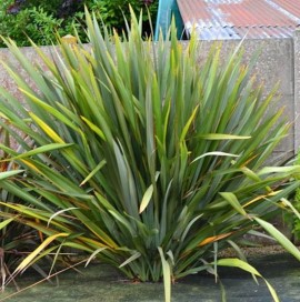 Lino de Nueva Zelanda o Formio verde. Esta hierba perenne, originaria de Nueva Zelanda, es considerada como arbusto por su porte, a pesar de no serlo al pertenecer a la familia Agavaceae. Sus hojas en forma de cintas nacen desde el tallo y puede alcanzar los 3 metros de envergadura. Es una planta muy ornamental y de aspecto tropical de crecimiento medio-lento. Utilizada para rocallas, borduras, estanques, etc, es conocida por ser resistente a la salinidad, a las heladas débiles (-5º), a las sequías y al encharcamiento, lo que la hace una especie muy versátil para muchos tipos de terrenos y climas.