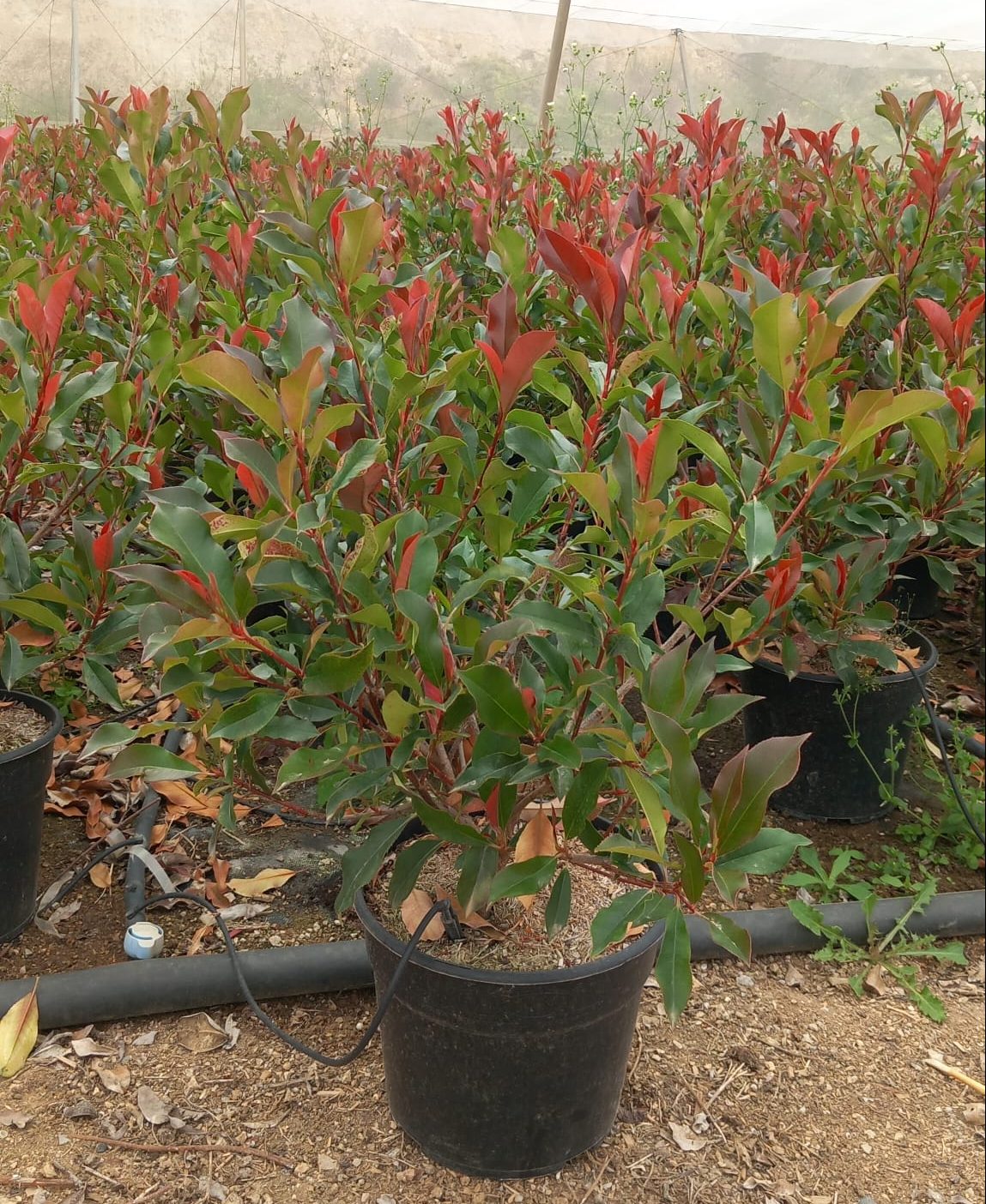La Photinia es un arbusto que tiene unas hojas persistentes, que, cuando están maduras, tienen un color verde. Esta característica hace que se utilice este tipo de arbustos como seto. Tras la poda o en primavera, la brotación tiene un complemento decorativo excepcional. Y es que todo el brote nuevo tiene unas tonalidades rojizas y las hojas, cuando son nuevas, también. Es una planta que tiene muy lento crecimiento, por lo que le cuesta coger cuerpo. Es necesario pinzarla muy a menudo y muy progresivamente para que vaya densificando.